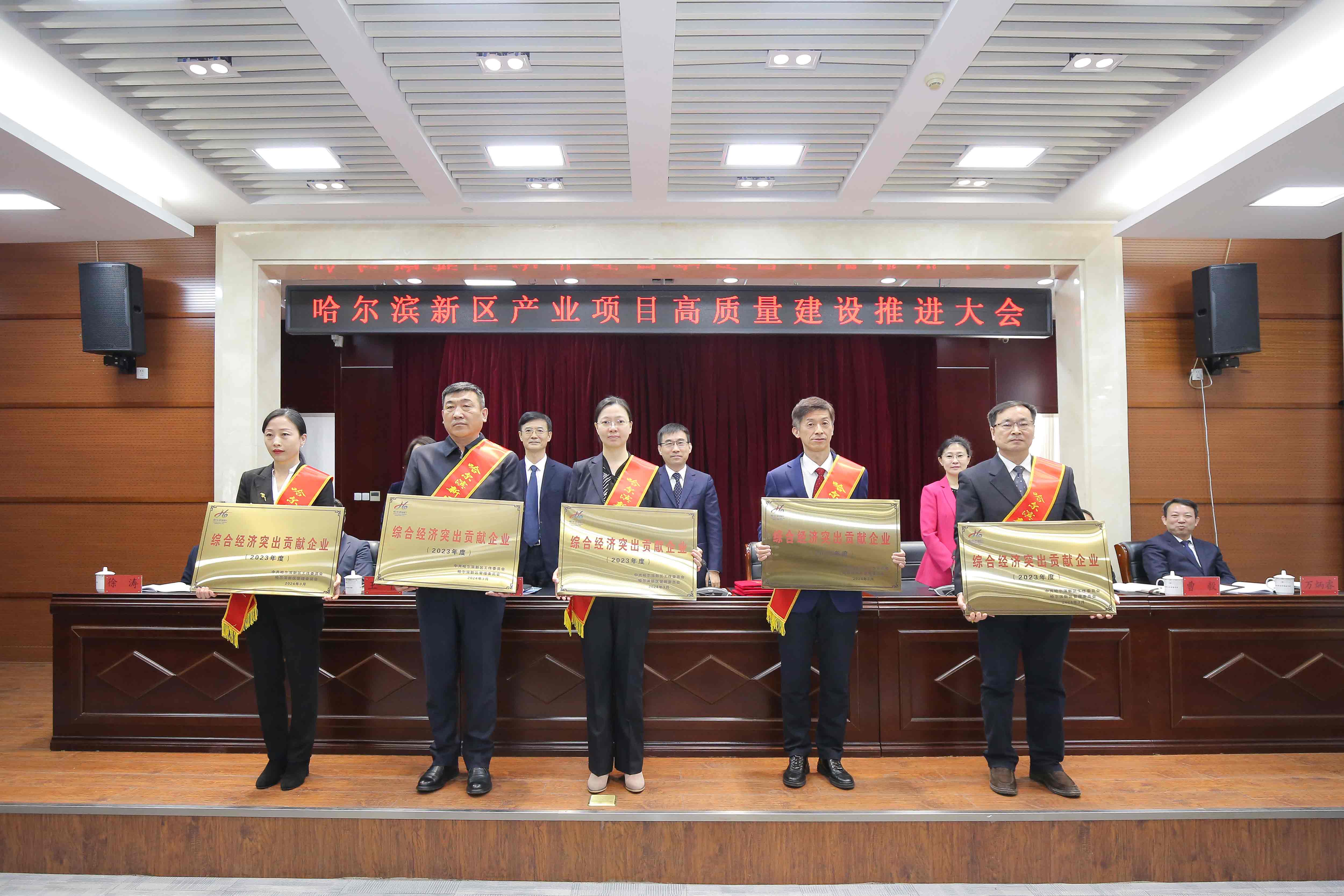 3月3日,哈尔滨新区召开工业项目高质量建设推进大会,对2023年度为新区经济生长做出突出孝顺的企业举行表扬。asiagame股份被评为综合经济突出孝顺企业,公司董事长邓喜军登台受奖。